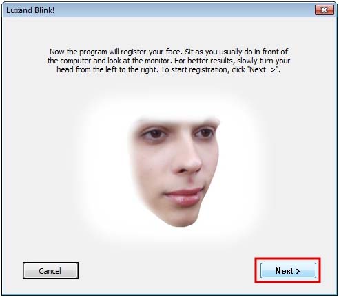 3. The program starts the enrollment of your face. Slowly turn your head to the left and to the right, while looking into the monitor.