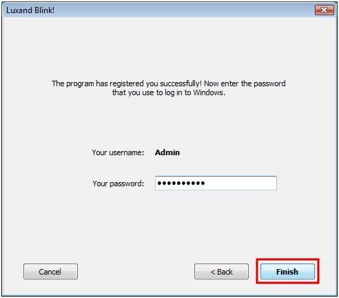 4. Once your face is registered, the program prompts you for your Windows login credentials and whether you want to enable face locking. Do the following: