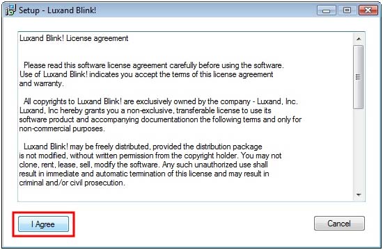 2. Click Luxand Blink! License agreement in the installation window.