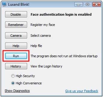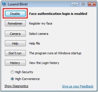 Note: You can also enable or disable face login to Windows by right-clicking the Luxand Blink! icon in the system tray and selecting the appropriate option.
