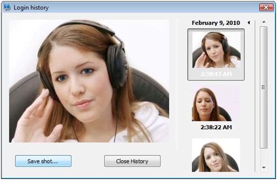 By using the Login history, you can view and save photos of people who have attempted to log in to your system. You can also view and save your own login photos.
