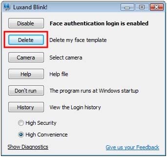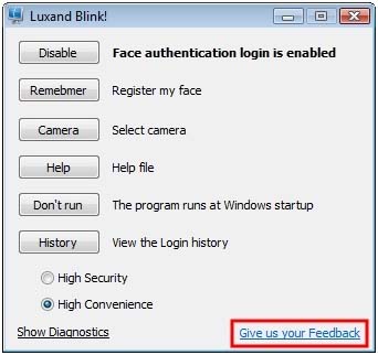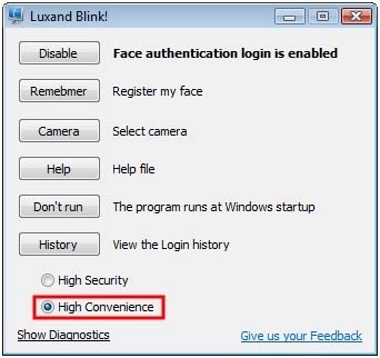 8. In High Convenience mode Blink! learns your facial appearance each time you log in. However, this could compromise security if someone else logs in with your password. In High Security mode, training is disabled.