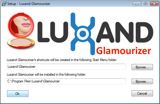 4. If you want to install Luxand Glamourizer to a different folder, click Options. Choose the path to install the program, select the folder in the Start menu and click OK.